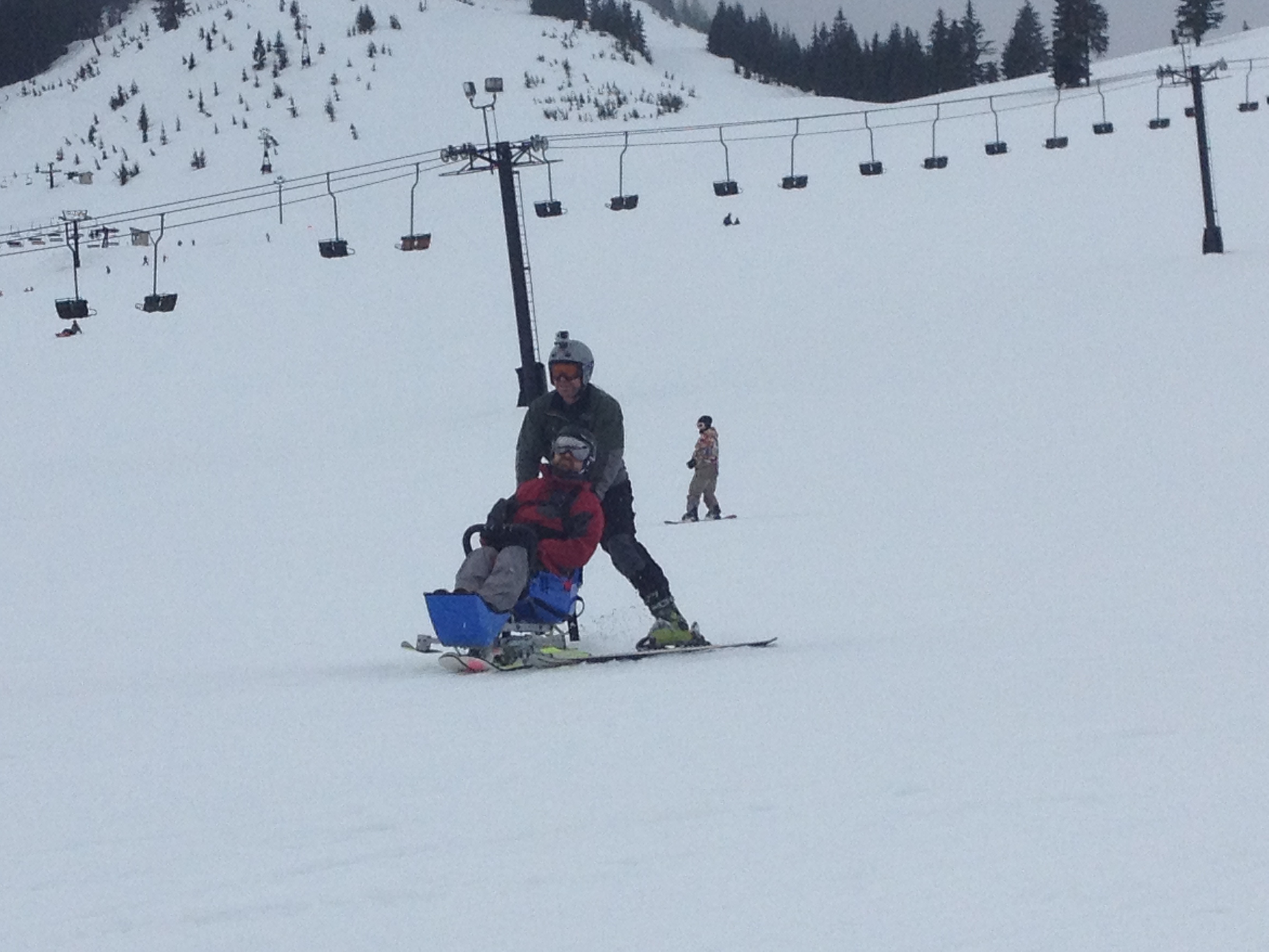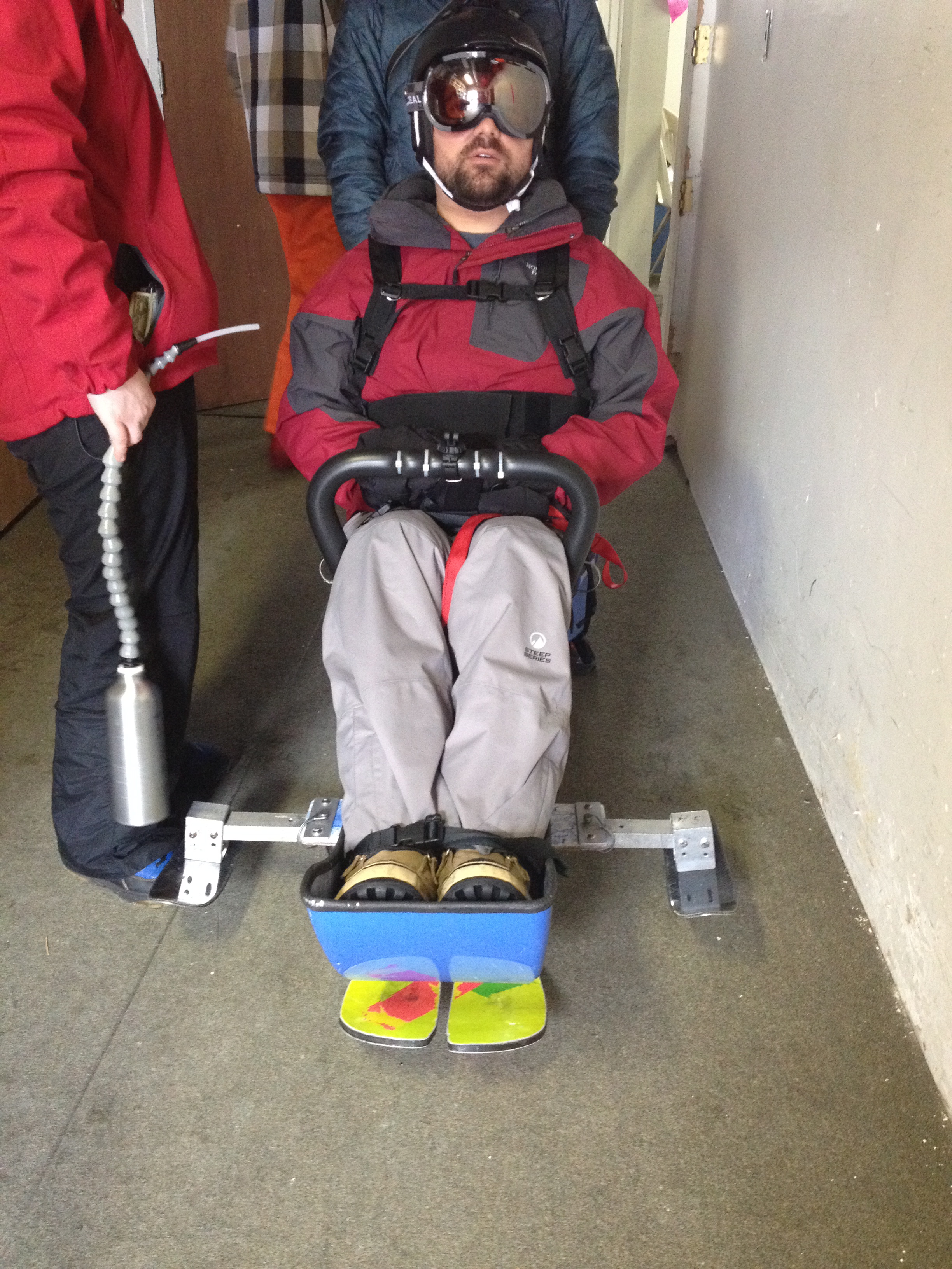 A quick push from my spotter sent me down the hill at a pace I was entirely unprepared for and it took a moment for the slack in the tethers he used to help guide my turns and control my speed to tighten. My heart raced and the adrenaline flowed as we weaved a path between fellow skiers and boarders and within seconds we were at the bottom of the hill approaching the crowd of friends and family. But instead of stopping for a breather, we sailed right past them and back in line for another round.