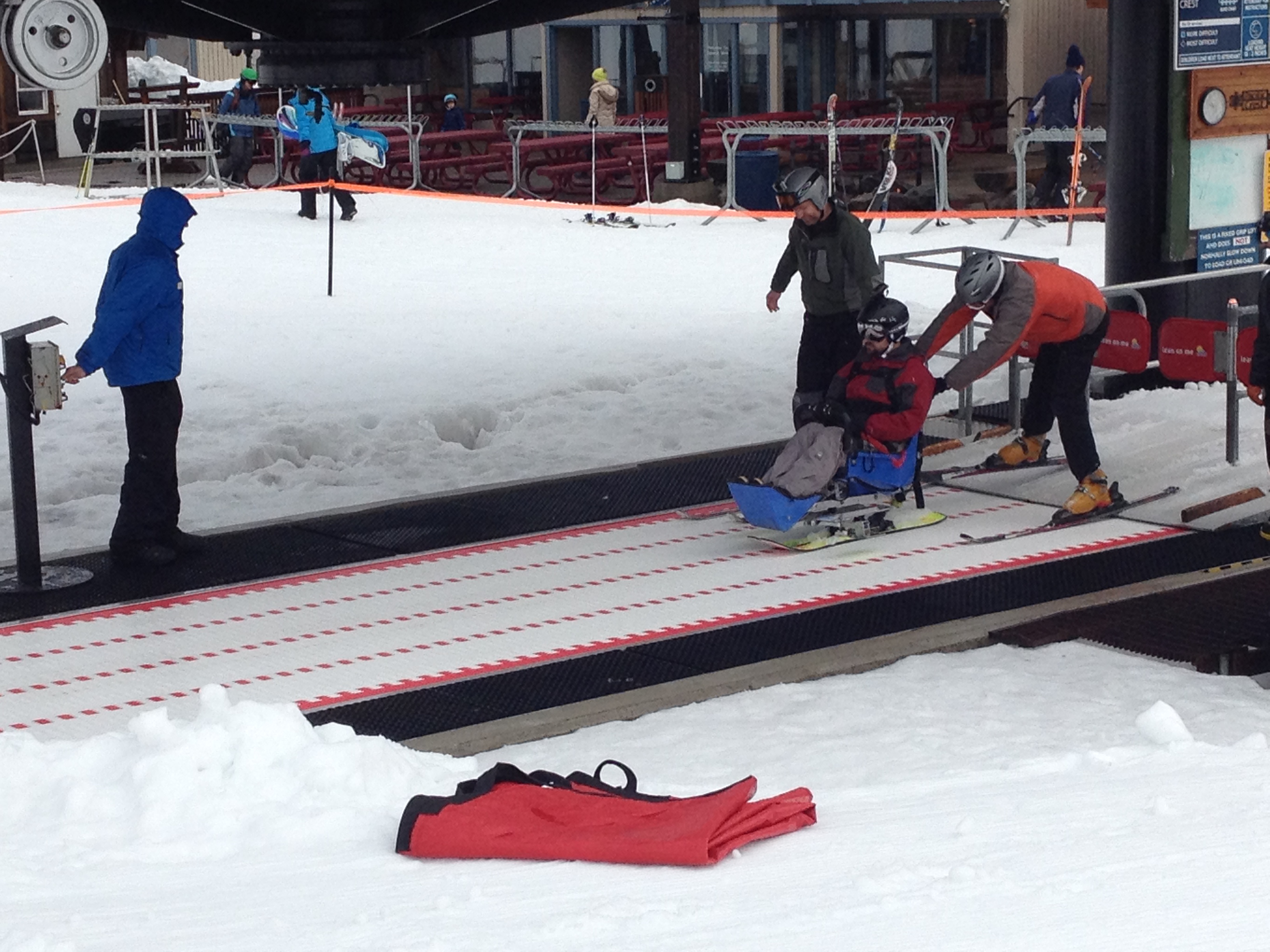 Transferring into the ski was a little rough and it took a good minute to get all strapped in, but then it was out the door and up the hill with a couple of volunteers I’d met only minutes prior. A couple of quick practice runs from the rope tow and we were off to the ski lift, the first of the major unknowns I hadn’t even attempted to speculate about. A quick 1-2-3 and a pop from the guys and it was over before I knew it. The dismount at the top was a tad bit creepier, feeling like I was going to land flat on my face when they lurched the ski forward and down the ramp. That brought the moment of truth – the first trip down the hill.