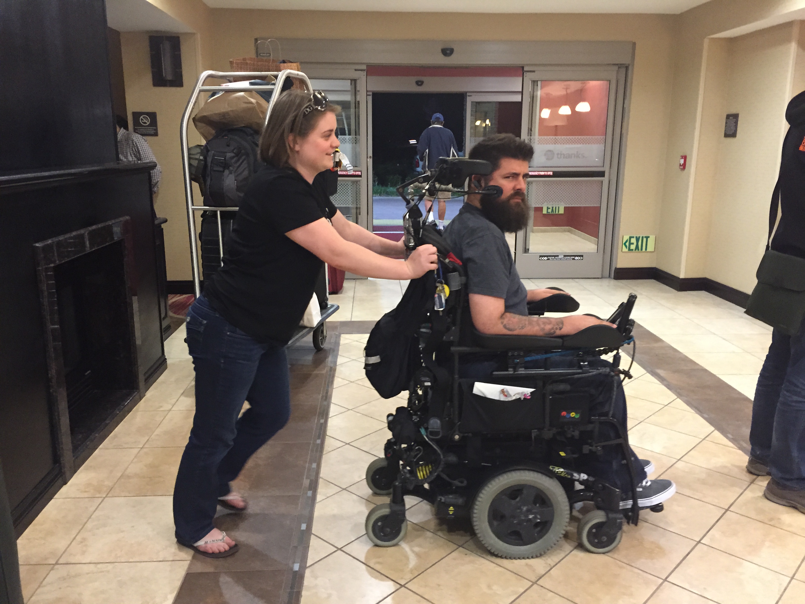 Eventually we made it to Kathleen and Jamie’s and were spoiled with fajitas, good conversation and ice cream sundaes. After dinner, we literally shoved off towards our next hotel, which had to look a little strange to the throngs of Japanese tourists in the lobby. Despite having to be pushed everywhere I went today, the mood among the three of us has been extremely upbeat. When you think about it, it’s a pretty good metaphor for what the trip has been thus far. Just one of these obstacles would be enough break most people, but we keep pushing. Okay, some of us more than others, but you get the gist.