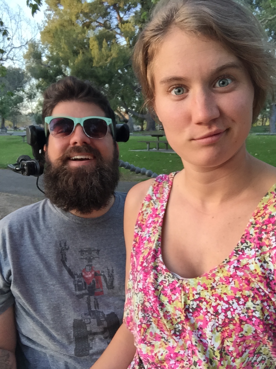 We got back to the shop just before three, Amanda pushing me past corporate sign that read, “Nu Motion: Mobility Starts Here,” praying that it would be much more than just a tagline, and we were not disappointed. Our technician, Abner, managed to swap out the motors in record time and we were already back on the road before the office closed. Rather than braving LA traffic on the way back to the hotel, we stopped off at a park to soak up some sunshine for the first time this trip… I mean vacation.
