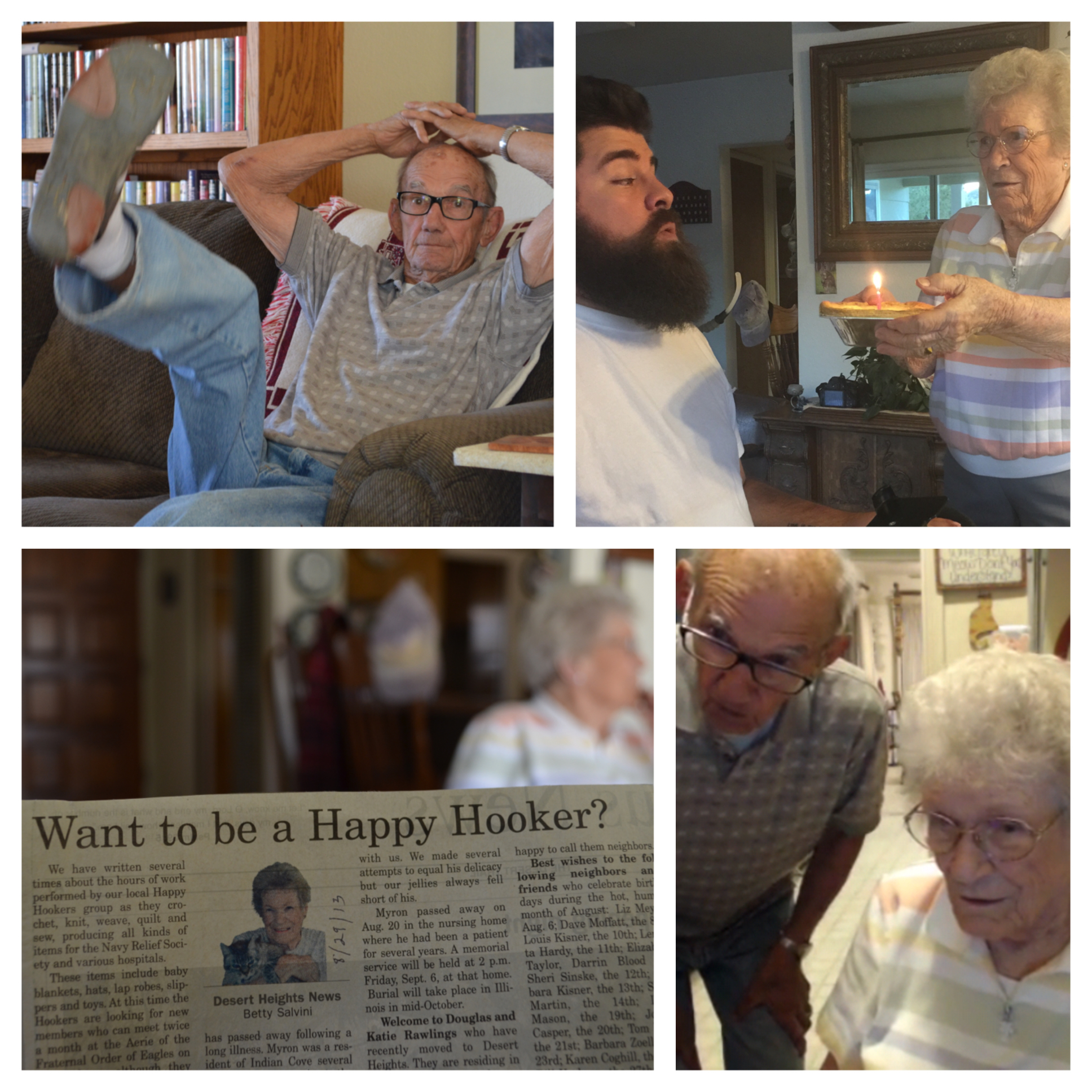 Grandpa Ed did his best to thwart photo opportunities as we pored through countless clippings of Desert Heights News, Grandma Betty’s weekly column on their life among the various wildlife of the high desert that was a staple in their town local paper for over 28 years. With razor wit and uncanny comic timing, she shares much more in common with Betty White than just her given name. She is up to date on Suge Knight’s court shenanigans and Chris Brown’s Twitter activity, but found Fifty Shades of Grey to be much tamer than what she usually reads.