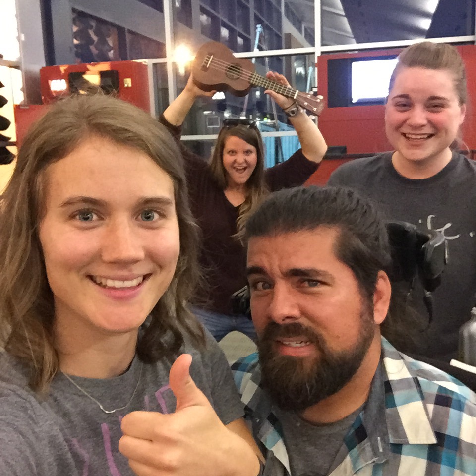 So here we go. I’m accompanied by the usual suspects and their assortment of skills. I’ve got my lady friend with her unshakable positive attitude. Slumberjack has her Breathe Right Strips. And Alicia just bought a new ukulele. On second thought, pray for Claire and me.